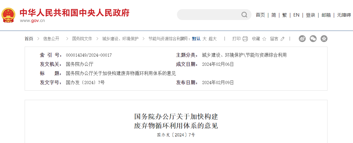 *********辦公廳關(guān)于加快構(gòu)建廢棄物循環(huán)利用體系的意見(jiàn)