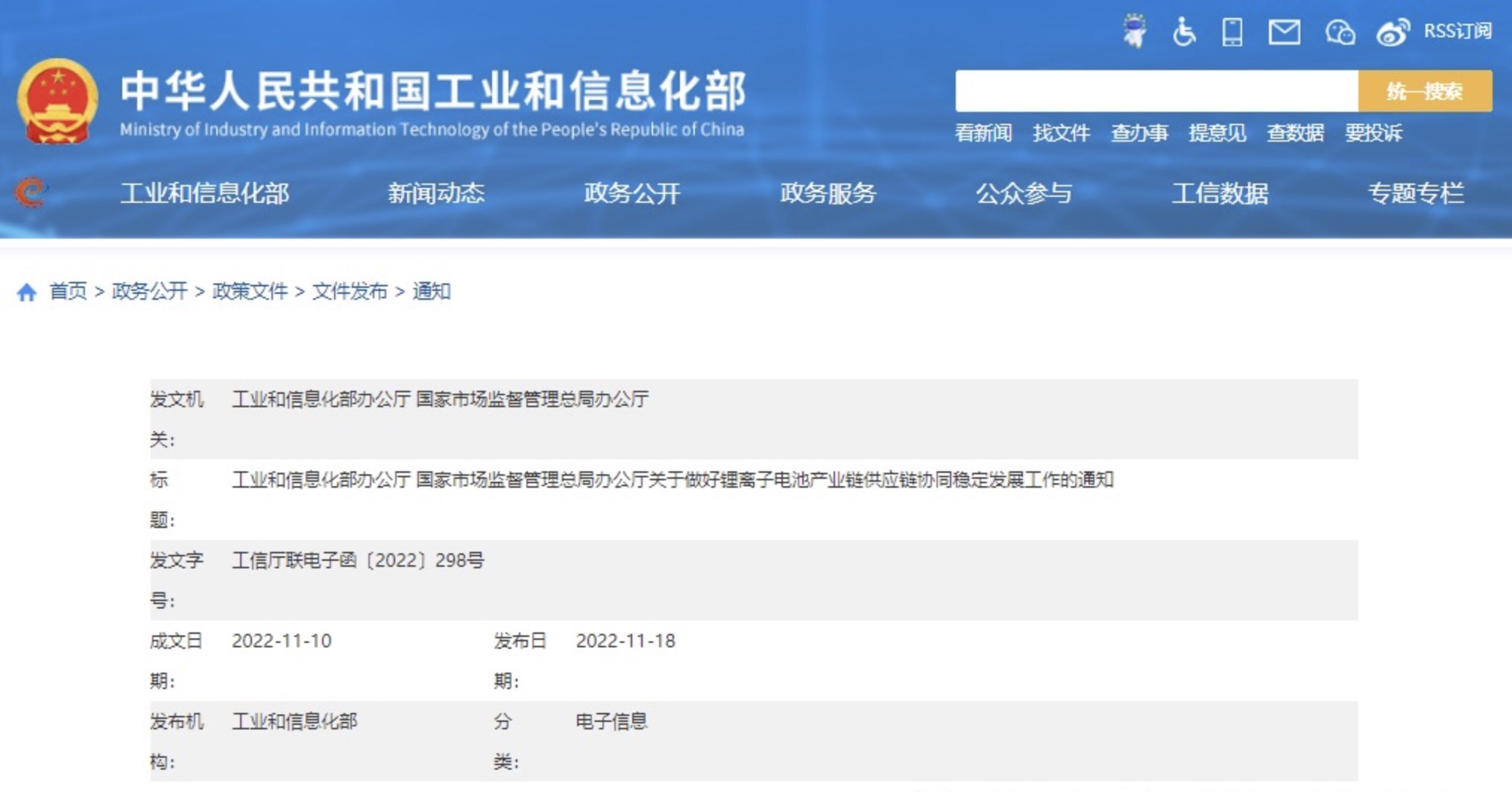 了解更多工信廳聯(lián)電子函〔2022〕298號(hào)各省、自治區(qū)、直轄市及計(jì)劃單列市、新疆生產(chǎn)建設(shè)兵團(tuán)工業(yè)和信息化主管部門、市場(chǎng)監(jiān)管局(廳、委),各有關(guān)單位:鋰離子電池(以下簡(jiǎn)稱...
