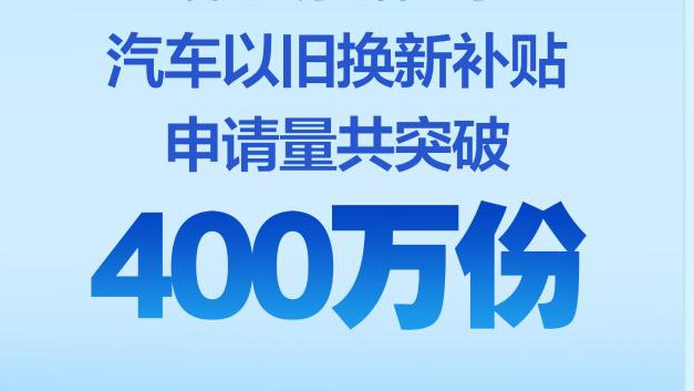 了解更多汽車以舊換新補(bǔ)貼申請(qǐng)量共突破400萬份