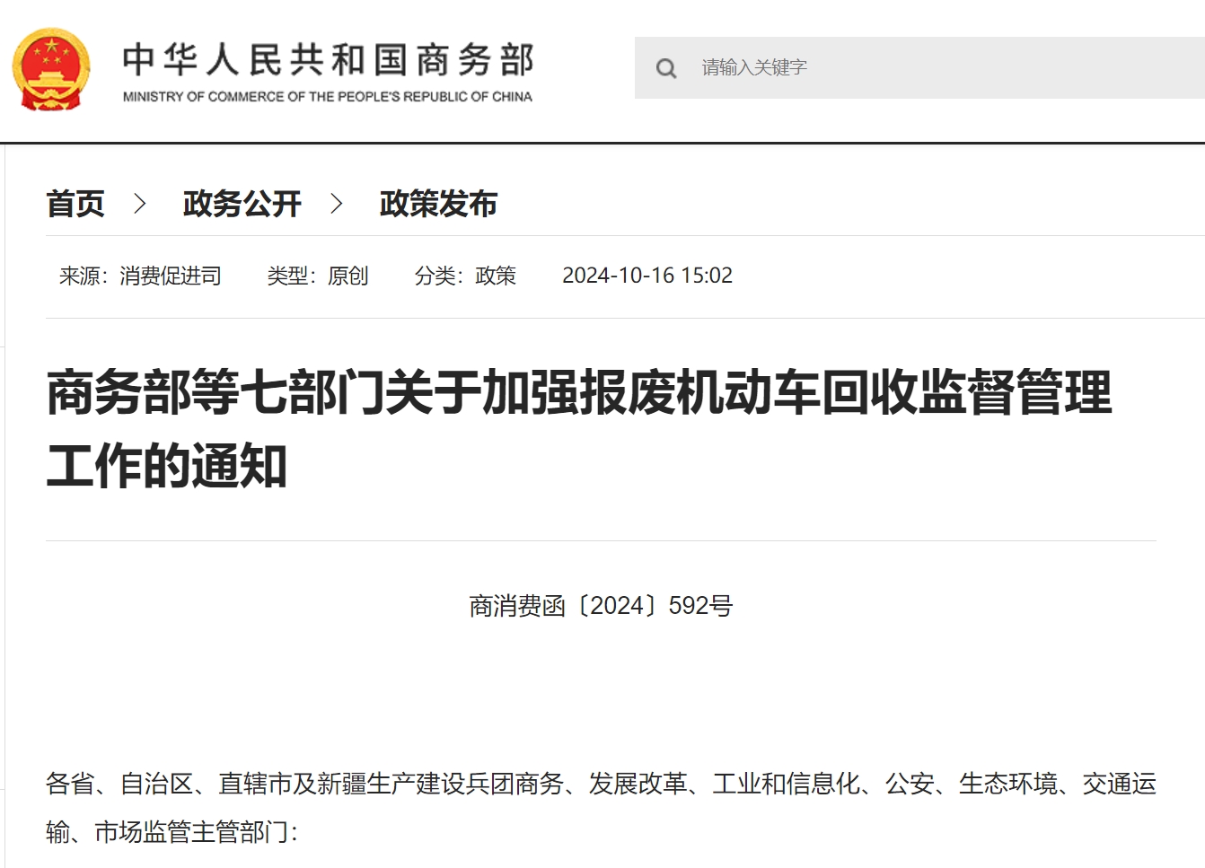 了解更多商務(wù)部等七部門:關(guān)于加強(qiáng)報(bào)廢機(jī)動(dòng)車回收監(jiān)督管理工作的通知