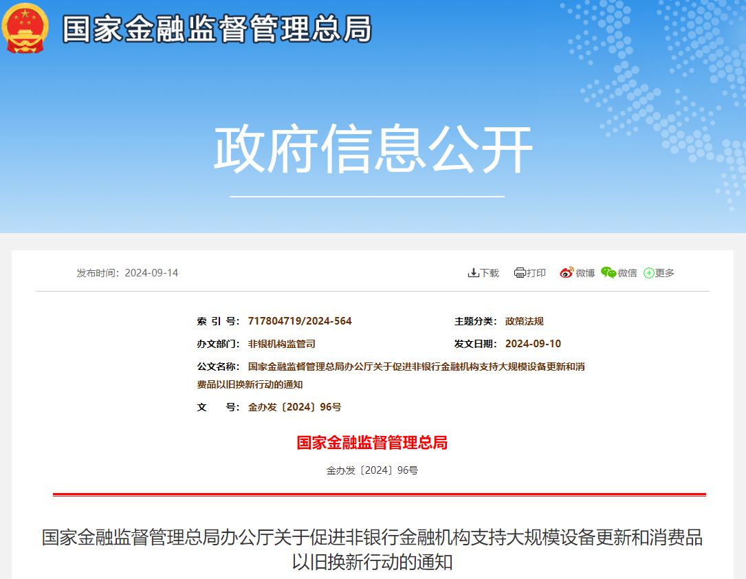 了解更多國家金融監(jiān)督管理總局:加大汽車金融服務(wù)支持汽車以舊換新