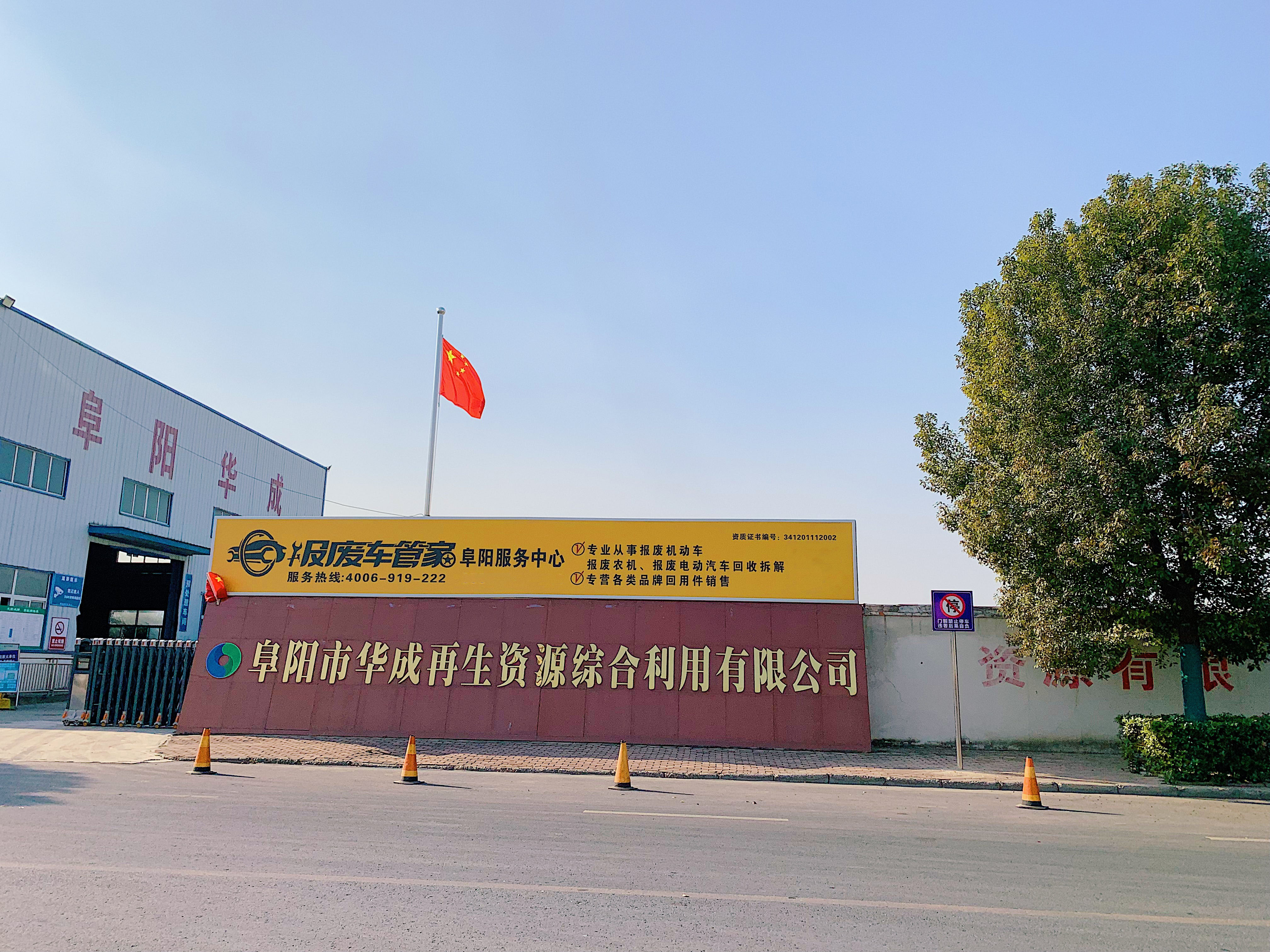 阜陽(yáng)市華成再生資源綜合利用有限公司成立于2012年,是玉成(北京)有限公司控股企業(yè)。廠址位于阜陽(yáng)市經(jīng)濟(jì)開(kāi)發(fā)區(qū)汽貿(mào)物流園,占地72畝,年回收拆解能力30000輛/臺(tái)(報(bào)廢機(jī)動(dòng)車(chē)20000輛、報(bào)廢農(nóng)機(jī)10000臺(tái))。