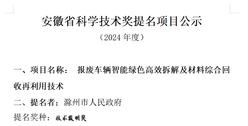 2024年度安徽省科學(xué)技術(shù)獎(jiǎng)提名項(xiàng)目公示材料