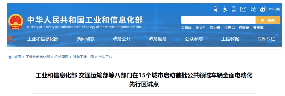 了解更多工信部等八部門在15個城市啟動首批公共領域車輛全面電動化先行區(qū)試點一圖讀懂(來源:裝備工業(yè)一司)