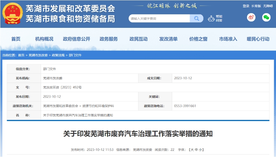 了解更多安徽省蕪湖市:建立健全廢棄汽車長效治理機制健全報廢汽車回收利用體系