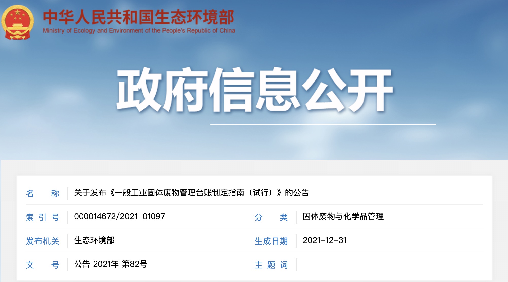 了解更多關(guān)于發(fā)布《一般工業(yè)固體廢物管理臺賬制定指南(試行)》的公告為落實《中華人民共和國固體廢物污染環(huán)境防治法》第三十六條關(guān)于建立工業(yè)固體廢物管理臺賬的有關(guān)規(guī)定,指導(dǎo)產(chǎn)...