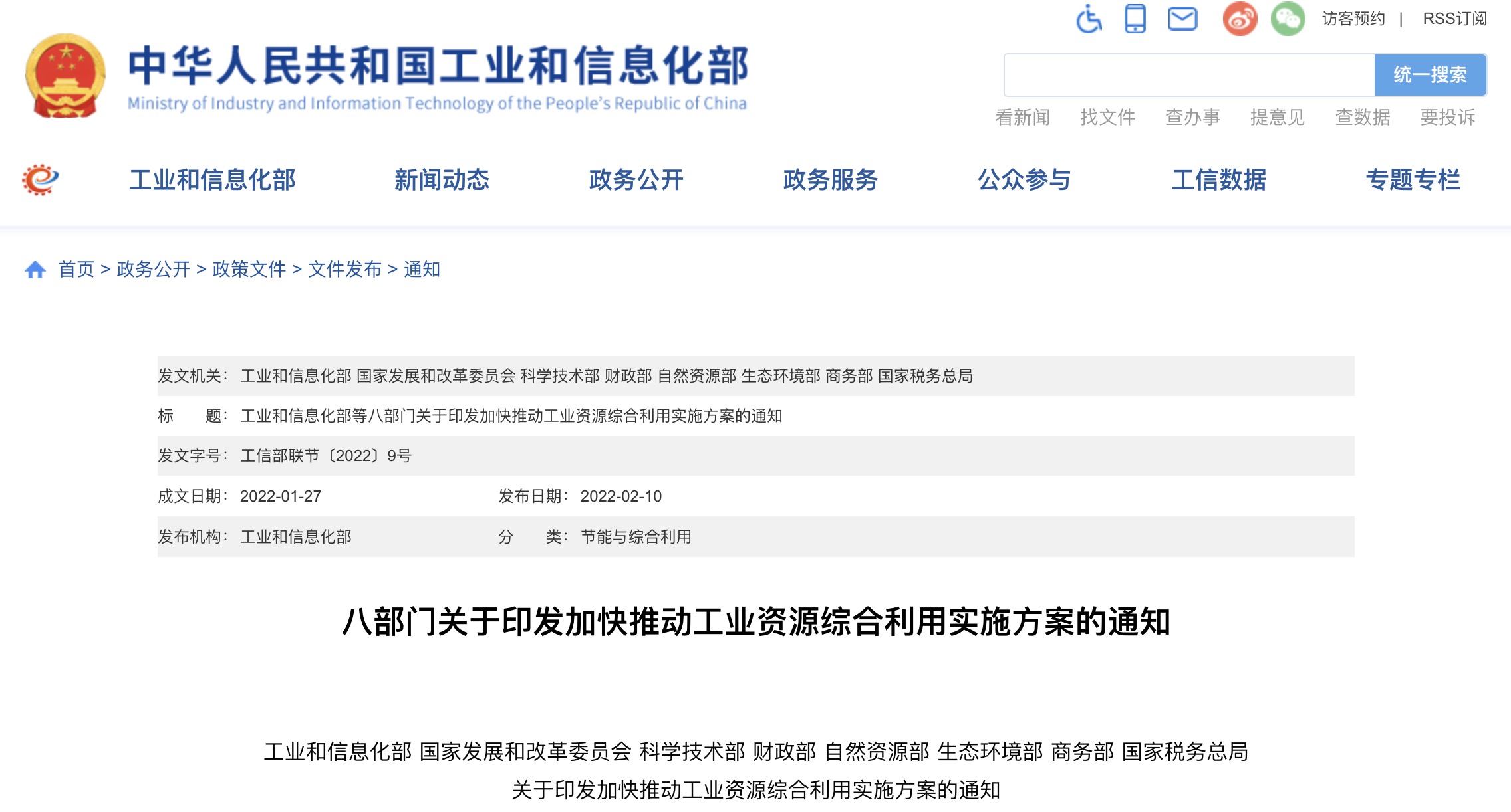 關(guān)于印發(fā)加快推動工業(yè)資源綜合利用實施方案的通知工業(yè)和信息化部國家發(fā)展和改革委員會科學(xué)技術(shù)部財政部自然資源部生態(tài)環(huán)境部商務(wù)部國家稅務(wù)總局關(guān)于印發(fā)加快推動工業(yè)資源綜...