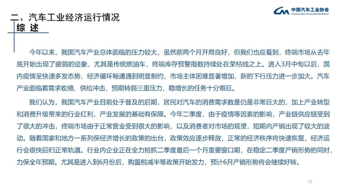 我們相信,作為國(guó)民經(jīng)濟(jì)支柱產(chǎn)業(yè),汽車工業(yè)具備強(qiáng)大的發(fā)展韌性和發(fā)展活力,通過(guò)各方面的共同努力,很快會(huì)回歸到正常的運(yùn)行軌道,對(duì)于全年保持穩(wěn)定增長(zhǎng),我們充滿信心。