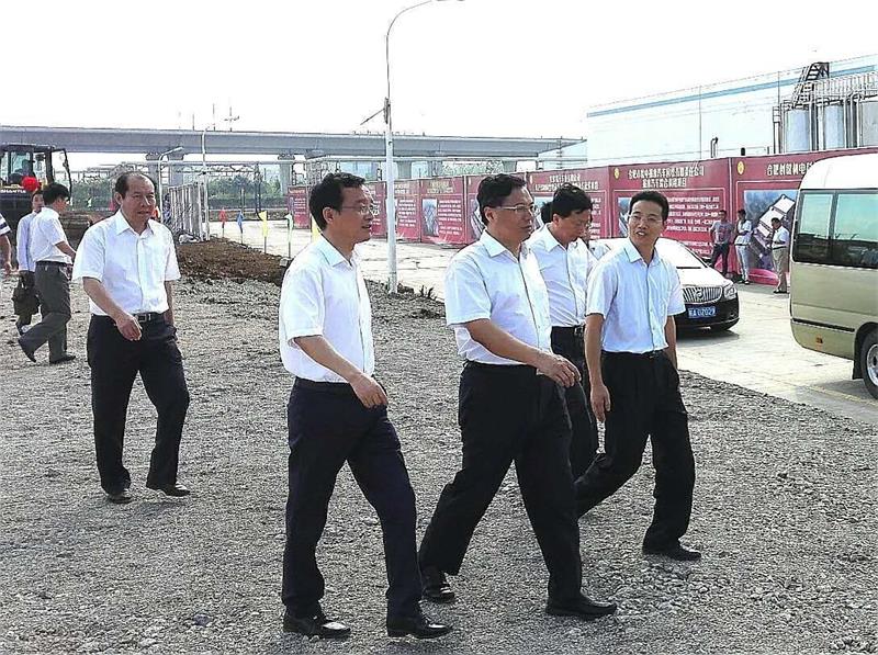 安徽省委常委、市委書記吳存榮在長豐縣委書記許華的陪同下巡查皖中報廢汽車回收公司形象展板